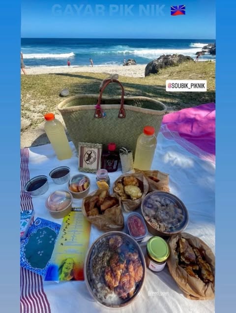 La création du panier pique-nique était le mariage parfait entre tradition cuisine et culture. Certes rempli de bonne chose à manger, on y trouve des produits locaux (confirures, tisanes, piments….) mais aussi des jeux lontan (ex : Kadok écrit par Mr Daniél Waro, jeux de la savatte…) sans oublier notre fameuse natte pour pouvoir se poser partout. D’ailleurs nous avons inspiré le guide du routard qui en 2026 proposera un zoom sur le pique-nique réunionnais.