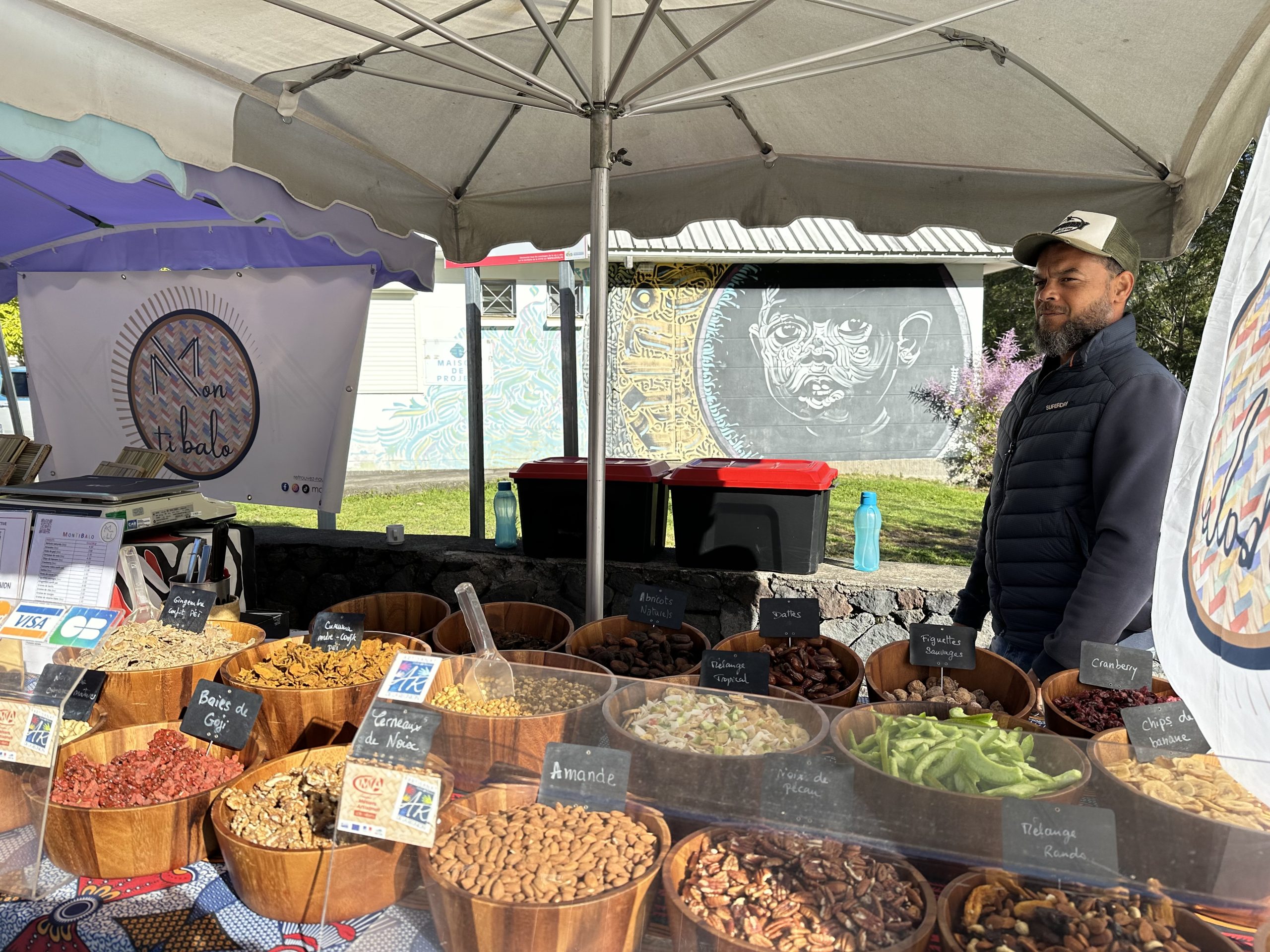 Je suis à La Reunion depuis février 2022 j’ai le sentiment d’être née ici. J’aime les kreols, j’aime cette île vibrante et fascinante, j’aime les produits, j’aime les producteurs. Depuis mon arrivée sur La Reunion au delà de la création de Montibalo j’ai également créé un groupe qui se nomme Marchés forains 974 où je partage avec 20000 personnes tous les appels à exposants pour que tout le monde ait le même niveau d’informations, j’aide les collègues à communiquer sur leurs activités, je les aide dans leurs démarches… Je partage également sur cette page tous les événements des différentes communes de l’île…