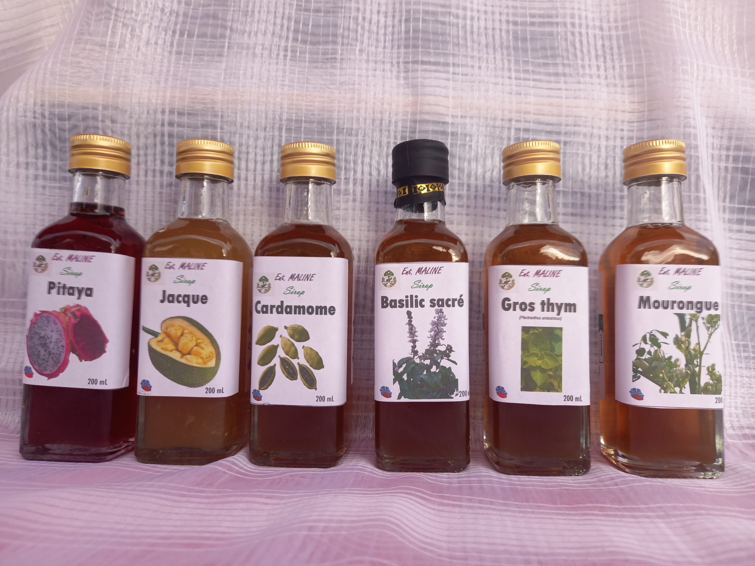 Je transforme une partie de mes récoltes en farine (banane, grain Jacque, embrevâtes.), gelées de plantes médicinales (à mettre dans un peu d’eau chaude, un thé ou une tisane), confitures (Pitaya, jacque, goyave, cœur de bœuf…), marmelade pamplemousse, délice de banane, délice de mourongue (moringa). Je fais des sirops et achards.